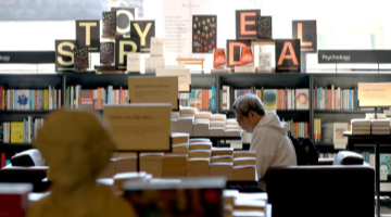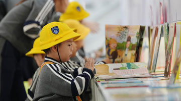 4月25日,人们在参观银雀山汉简文化展。