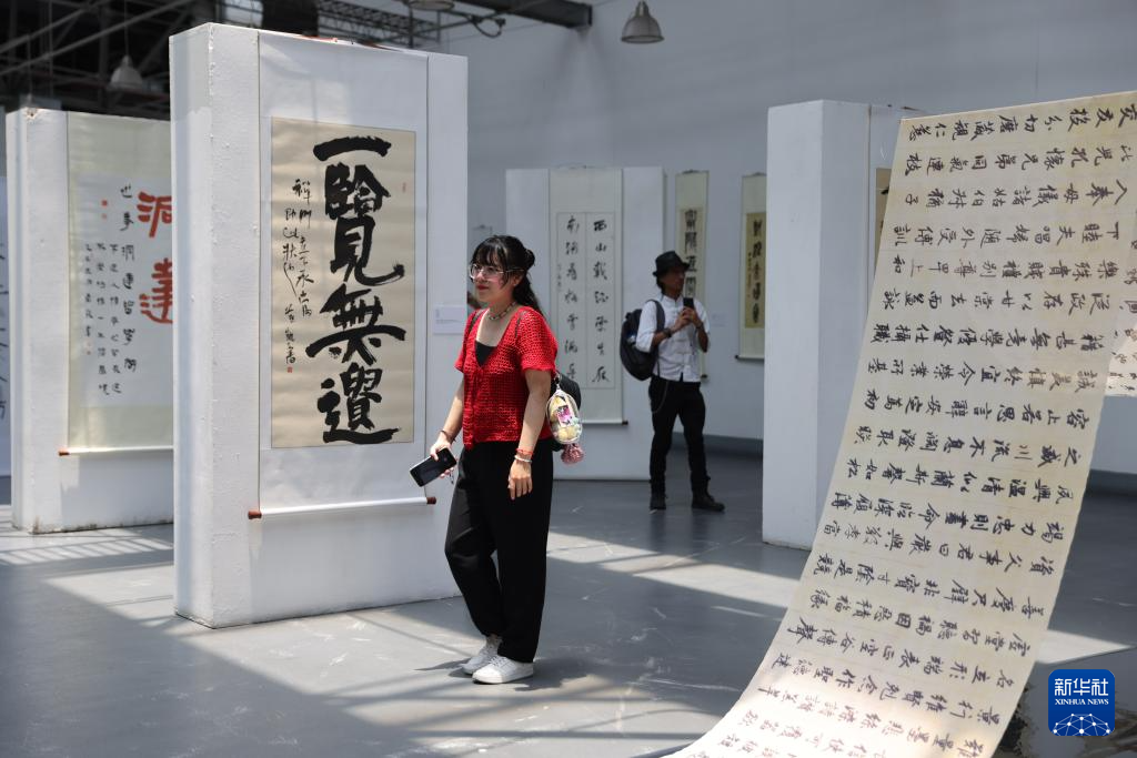 5月3日,人们在墨西哥首都墨西哥城举办的“兰亭·雅集”中国书法展上欣赏书法作品。