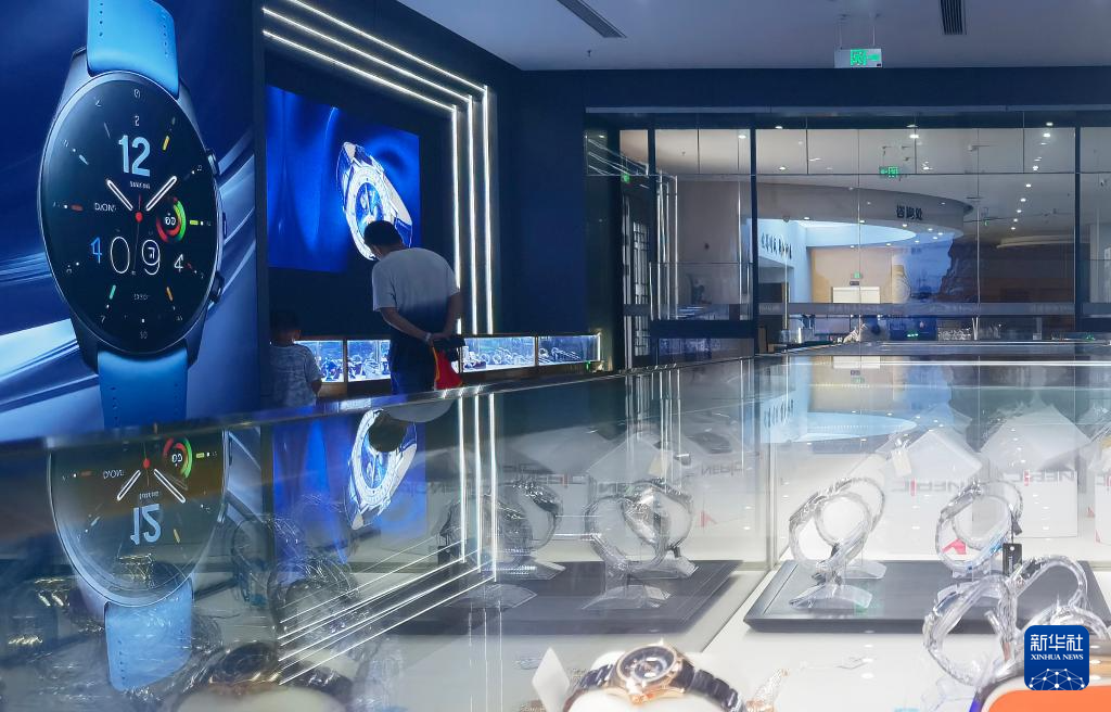 5月17日,游客在船山钟表博物馆内的产品展销区参观。