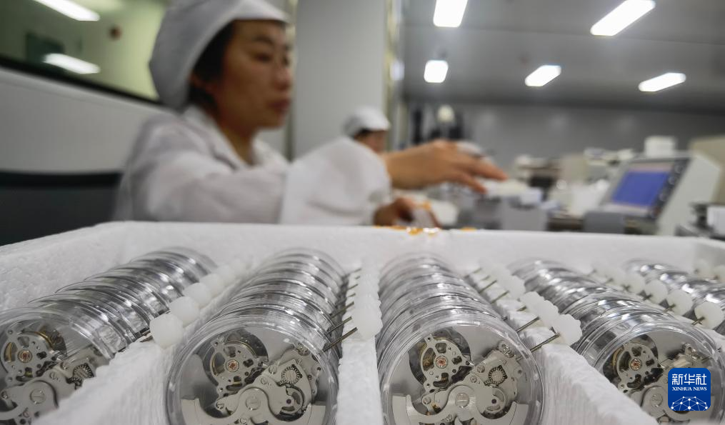 5月17日在“船山时间谷”一家手表企业拍摄的手表机芯生产。