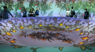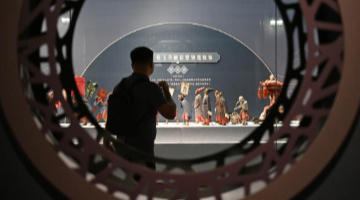 5月19日,记者拍摄展出的清代珐华三彩刻划兽面纹铺首耳琵琶尊。
