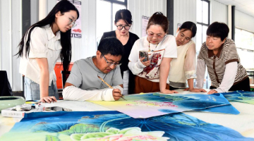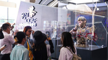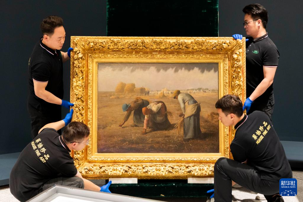 6月9日,工作人员在开箱仪式上放置米勒的作品《拾穗者》。