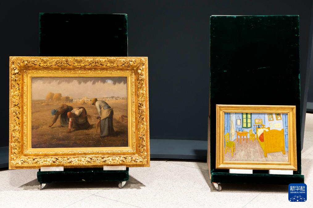 6月9日在开箱仪式上拍摄的米勒的作品《拾穗者》(左)和梵高的作品《梵高在阿尔勒的卧室》。