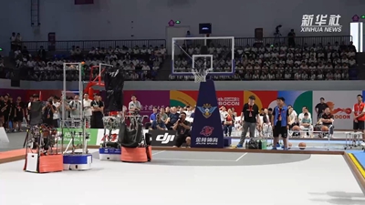 7月16日,参加男子抢渡赛的选手们在比赛中。新华社记者 杜子璇 摄