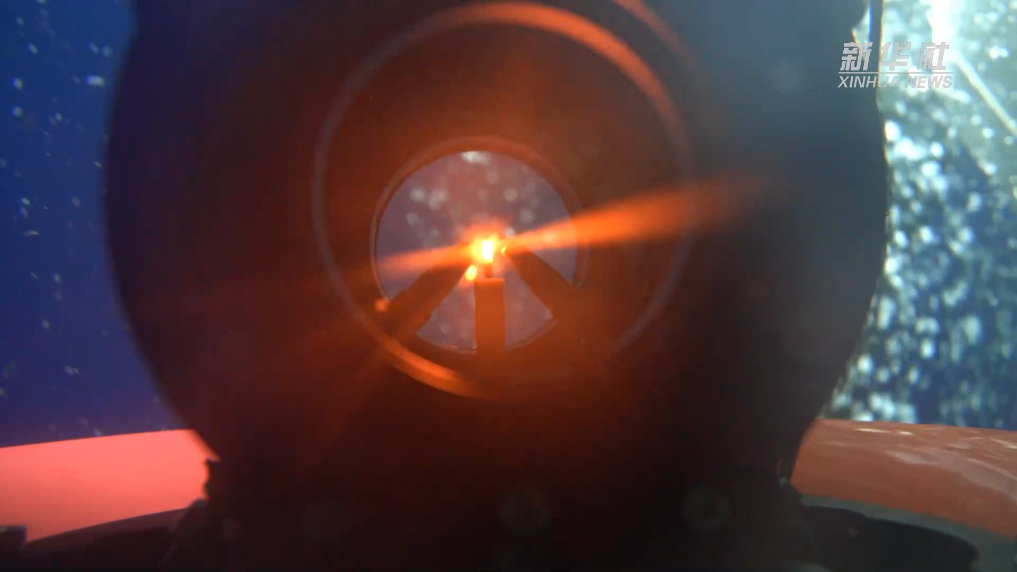 采火装置在海底冷泉喷口采集可燃冰(9月18日摄)。新华社发(广州海洋地质调查局供图)