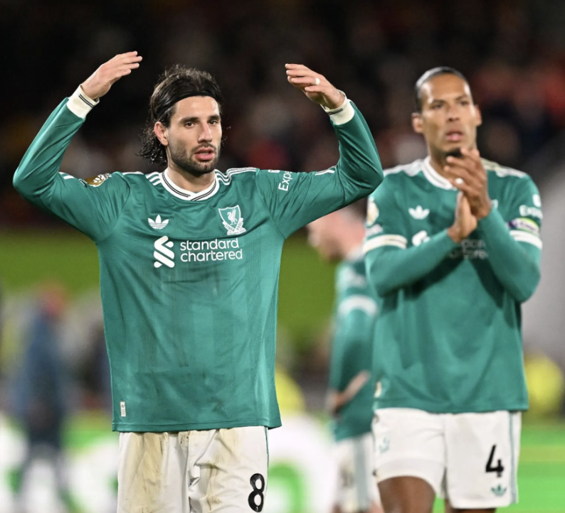 利物浦周中客场5:1击败法兰克福的欧冠大捷,并不能帮助他们扭转英超赛场上的颓势。当天与布伦特福德一战开赛仅5分钟,主队利用“手榴弹式”界外球发动进攻,瓦塔拉接队友头球摆渡,倒钩射门得手。第45分钟,布伦特福德后场直传洞穿利物浦防线,沙德单刀破门扩大领先优势。上半场补时阶段,凯尔凯兹中路抢点为利物浦扳回一球。