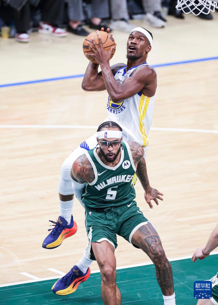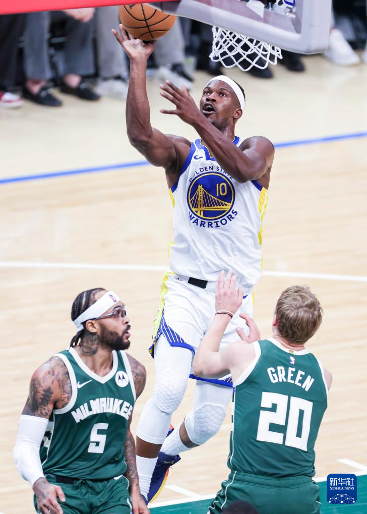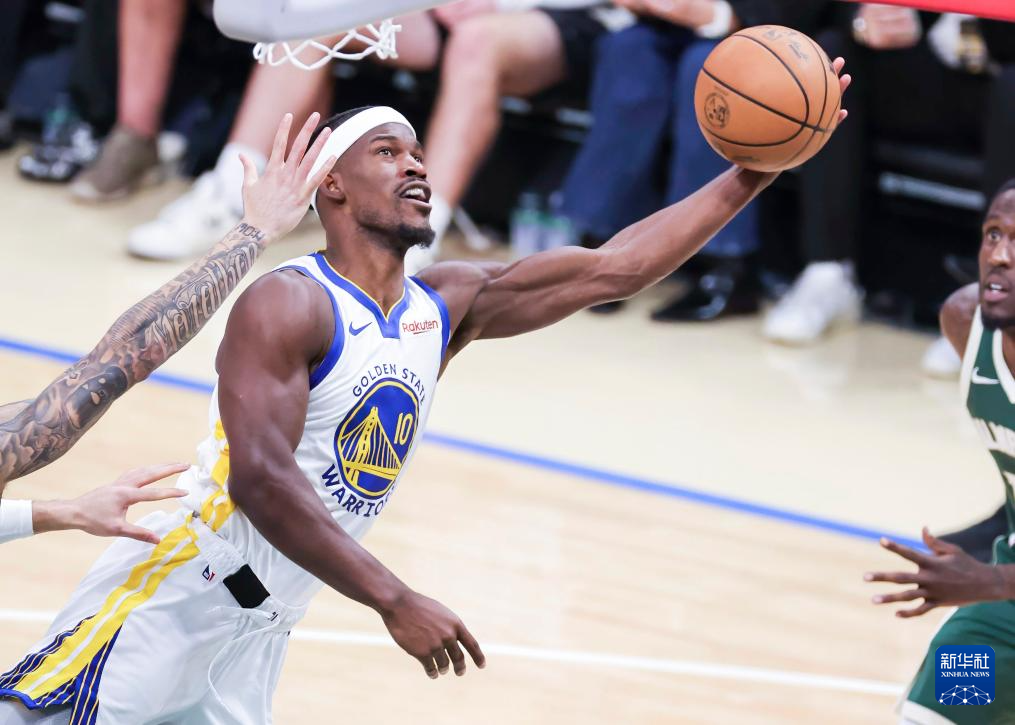 10月30日,勇士队球员吉米·巴特勒三世(上)在比赛中上篮。