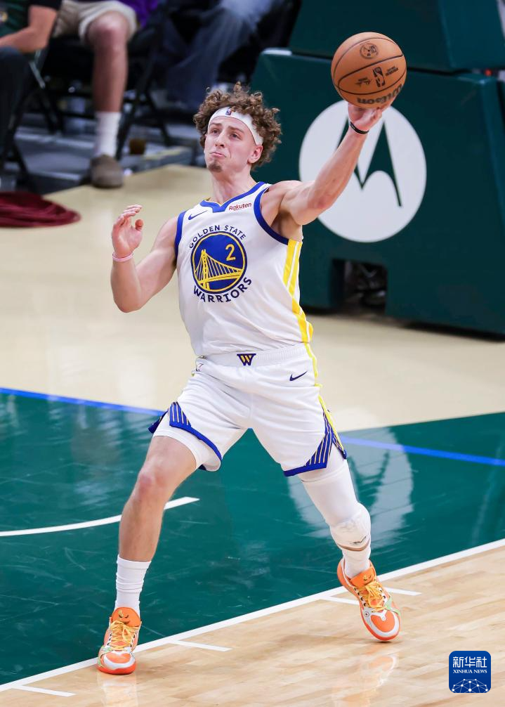 10月30日,勇士队球员波杰姆斯基在比赛中远投传球。