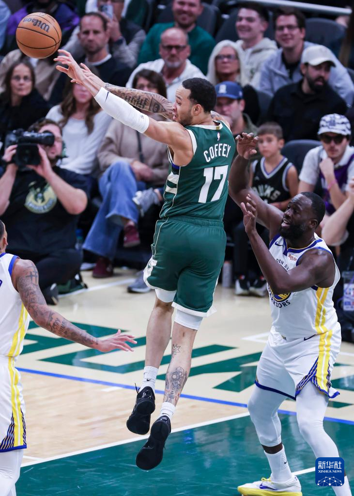 10月30日,雄鹿队球员科菲在比赛中空中传球。