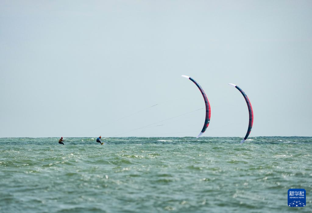 10月30日,上海队选手李婉(右)和广东队选手王思在女子水翼风筝板级比赛中。最终,李婉获得冠军,王思获得亚军。