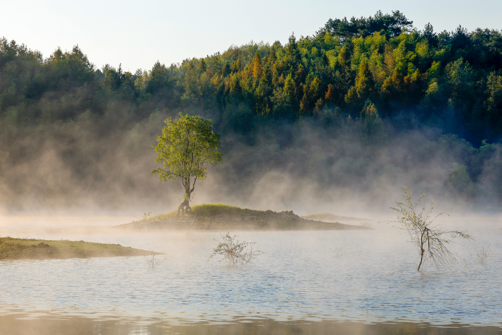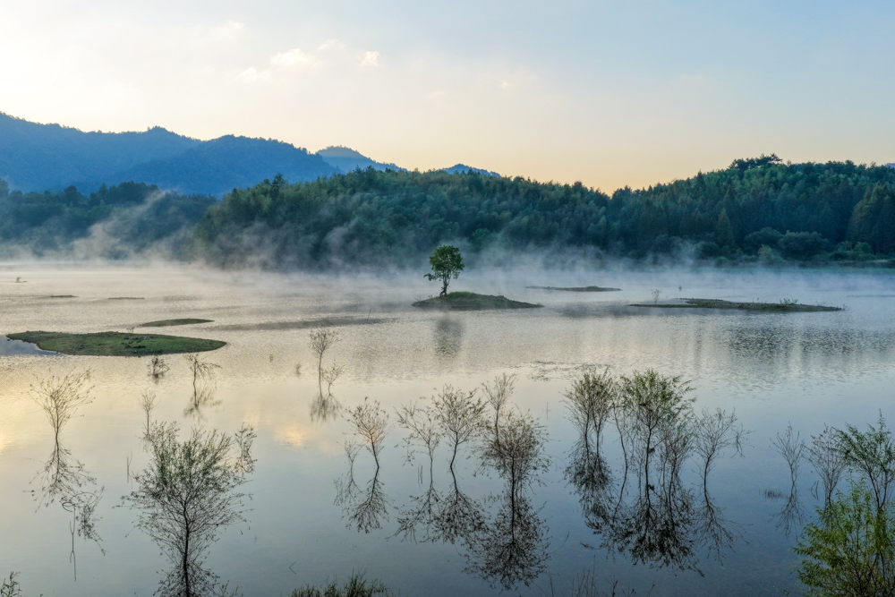 安徽黟县:奇墅湖晨雾美如画-新华网