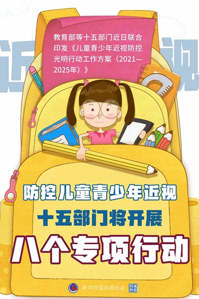 ????? 教育部等十五部門近日聯(lián)合印發(fā)《兒童青少年近視防控光明行動工作方案(2021—2025年)》,共同實施八個專項行動防控兒童青少年近視。工作方案提出,力爭到2025年每年持續(xù)降低兒童青少年近視率,有效提升兒童青少年視力健康水平。