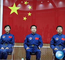 執(zhí)行天宮一號(hào)與神舟九號(hào)載人交會(huì)對接任務(wù)航天員乘組與記者見面