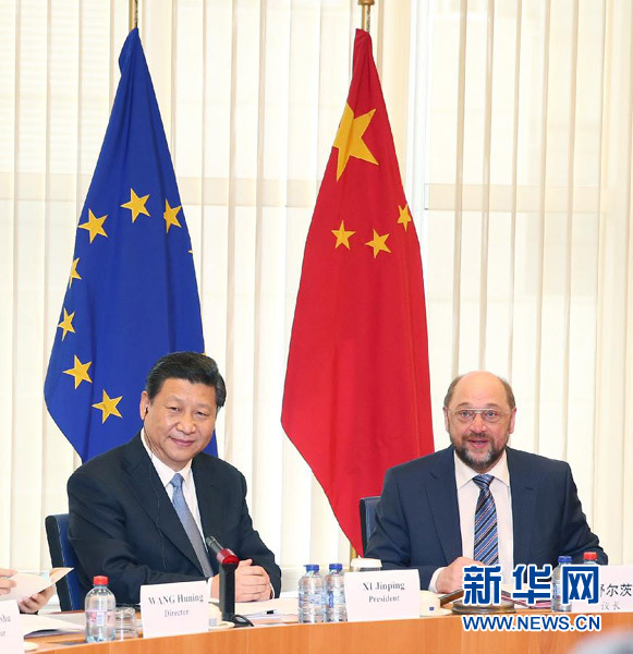 ????新華網(wǎng)布魯塞爾3月31日電(記者孟娜 徐劍梅)國(guó)家主席習(xí)近平31日在布魯塞爾會(huì)見(jiàn)歐洲議會(huì)議長(zhǎng)舒爾茨。