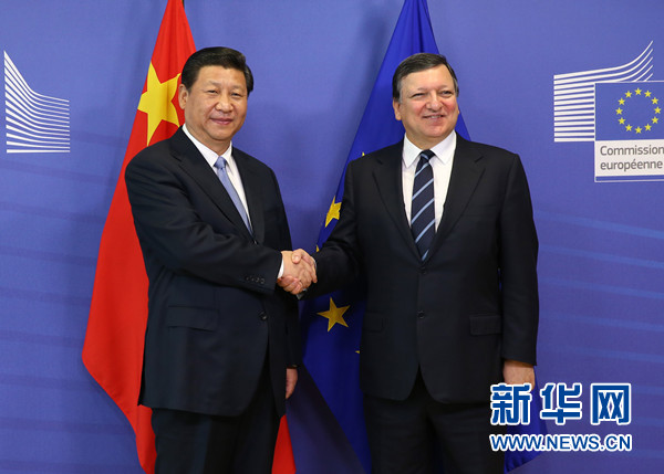 ????3月31日,國家主席習(xí)近平在比利時布魯塞爾會見歐盟委員會主席巴羅佐。 新華社記者 龐興雷 攝