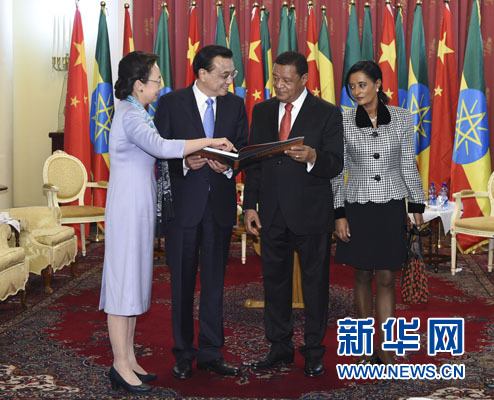 ??? 這是會(huì)見(jiàn)結(jié)束后,李克強(qiáng)總理向穆拉圖總統(tǒng)贈(zèng)送介紹北京大學(xué)的畫冊(cè)。穆拉圖總統(tǒng)年輕時(shí)曾在北京大學(xué)留學(xué)。 新華社記者李學(xué)仁攝
