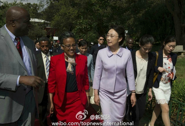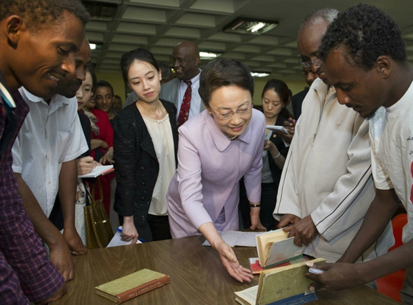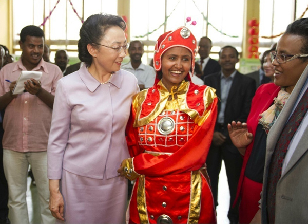 ????新華網(wǎng)北京5月6日電 據(jù)新華社“新國(guó)際”微博報(bào)道,李克強(qiáng)總理夫人程虹5日在埃塞俄比亞總理夫人羅曼·塔斯法耶的陪同下參觀了亞的斯亞貝巴大學(xué),觀摩漢語(yǔ)授課,與學(xué)生們交流,觀看學(xué)生們的中國(guó)文化才藝展示,還捐贈(zèng)了書(shū)籍、計(jì)算機(jī)等物品。程虹說(shuō),你們是文化的紐帶,感謝你們對(duì)中國(guó)人民的情誼。你們對(duì)中國(guó)文化的熱愛(ài)感動(dòng)了我,也會(huì)感動(dòng)中國(guó)人民。