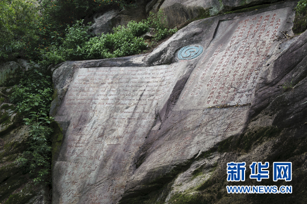 ??? 走進那段記錄在石壁上的海絲歷史聯合國教科文組織“海絲”考察隊于1991年觀摩祈風石刻,認定此為宋元時期海上絲綢之路起點的文物佐證,并做中英文新刻(5月8日攝)。 26年來,今年65歲的文物管理所原所長胡家其老人已經記不得多少次向人們講述九日山作為宋元時期海上絲綢之路起點的歷史,但他從不言倦。福建泉州豐州鎮九日山因“山中無石不刻字”而與眾不同。這座海拔只有一百多米的小山現存古代摩崖石刻77方,其中宋代石刻61方。這61方石刻中又有10方直接與海上絲綢之路有關,記錄了公元1174年至1266年期間11次官辦祈風儀式。新華社記者 姜克紅 攝