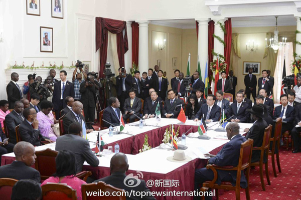 ????新華網(wǎng)北京5月11日電 據(jù)新華社“新國際”微博報道,11日,李克強(qiáng)總理和肯尼亞、南蘇丹、烏干達(dá)、盧旺達(dá)四國總統(tǒng),及作為總統(tǒng)代表的坦桑尼亞、布隆迪兩國外長,共同見證了中肯蒙巴薩-內(nèi)羅畢鐵路合作協(xié)議簽署。蒙內(nèi)鐵路是連接?xùn)|非6國鐵路網(wǎng)建設(shè)的開端,將完全采用中國的技術(shù)標(biāo)準(zhǔn)建設(shè)。?
