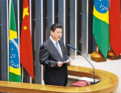當地時間7月16日,國家主席習近平在巴西國會發表演講。新華社記者 劉建生攝