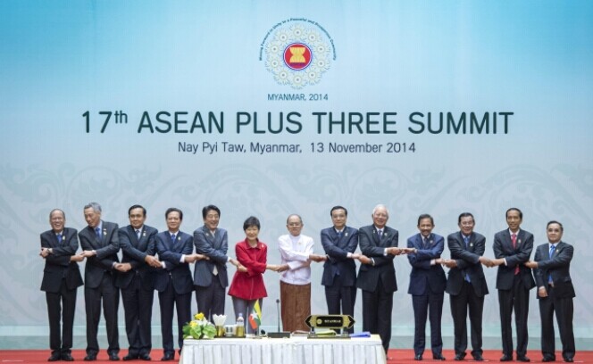 會前“全家福”是召開國際會議的慣例。在當天的10+3會議之前,十幾位領導人在臺上排成一排,剛一亮相,攝影記者的長槍短炮就立刻“開火”,快門聲響成一片。