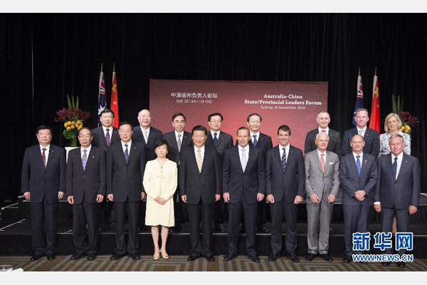 ????新華網(wǎng)悉尼11月19日電(記者魏建華 張小軍)國家主席習近平19日在悉尼與澳大利亞總理阿博特共同出席首屆中澳省州負責人論壇。
