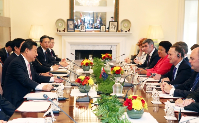 ????(11月20日,國家主席習近平在惠靈頓同新西蘭總理約翰·基舉行會談。新華社記者姚大偉攝)