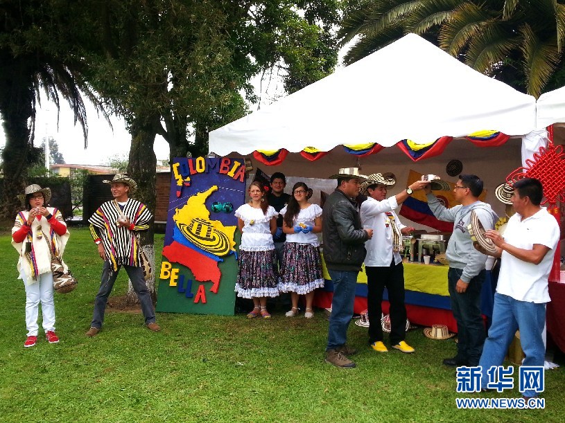 ????哥倫比亞的咖啡、燉肉和草帽吸引了許多來賓。(新華網記者 梁君茜 攝)