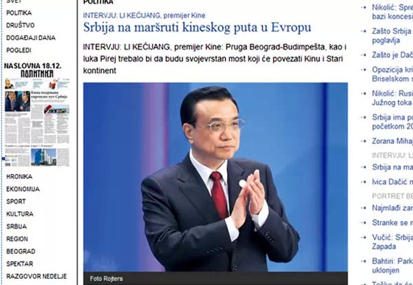 ????此外,塞爾維亞《政治報》網站刊文《中塞關系就像高速列車》,透露李克強和武契奇總理將共同為由中國專家建設的跨多瑙河大橋通車剪彩,并有望商談新的基建項目。塞爾維亞國家廣播電視臺RTS刊文《貝爾格萊德峰會,加強經濟關系》稱,近三十年時間里,中國總理將首訪塞爾維亞,中塞兩國總理將共同成為中國-中東歐國家領導人會晤的東道主。新的絲綢之路設想是為了加強中亞各國的聯系,而這條路也把中國帶到了巴爾干半島。