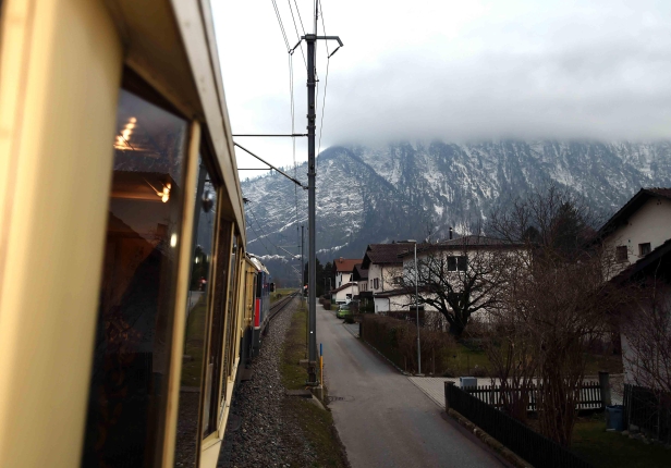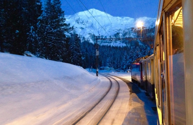 (專(zhuān)列在暮色中即將抵達(dá)達(dá)沃斯,窗外白雪皚皚,昏黃的燈光感覺(jué)很溫暖。攝影:王威)
