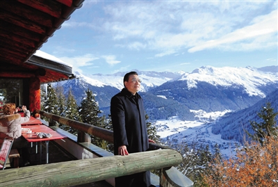世經論壇工商對話會及論壇年會開幕前1小時,李克強來到下榻飯店邊海拔1800米的沙茨阿爾卑山頂,放眼達沃斯。