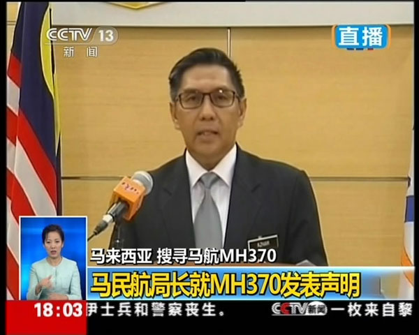 ??? 1月29日,馬來(lái)西亞民航局宣布,馬航370航班失事,并推定機(jī)上所有239名乘客和機(jī)組人員已遇難。這是馬來(lái)西亞民航局總監(jiān)愛(ài)茲哈爾丁發(fā)表講話(huà)的視頻截圖。新華社發(fā)