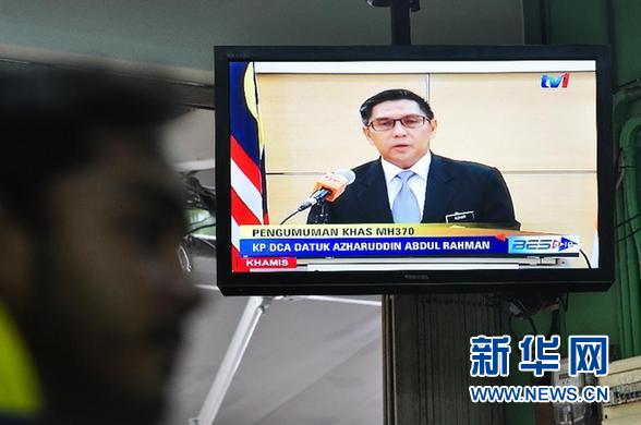 ????1月29日,在馬來西亞吉隆坡,電視直播馬來西亞民航局局長愛茲哈爾丁發(fā)表聲明。馬來西亞民航局當(dāng)日宣布,馬來西亞航空公司MH370航班失事,推定機(jī)上全部239名乘客及機(jī)組成員已遇難。 新華社發(fā)(張紋綜攝)