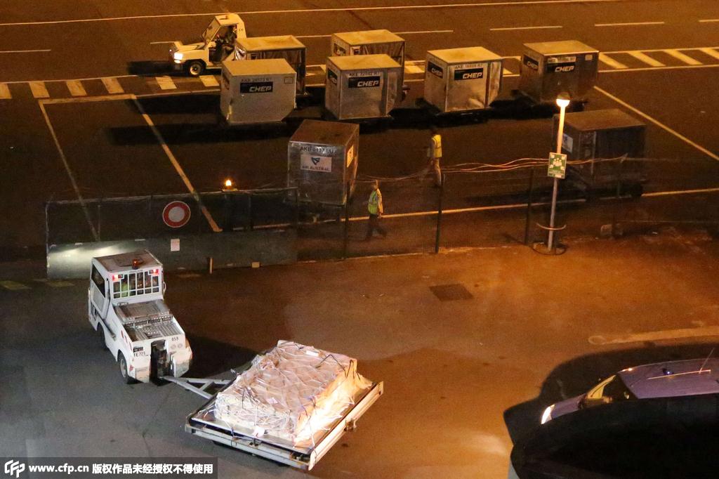 當地時間2015年7月31日,法國留尼汪島,機場車輛運輸發現的疑似MH30副翼,機翼殘骸將被運往法國。