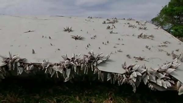 波音777襟副翼殘骸表面布滿貝殼(網頁截圖)