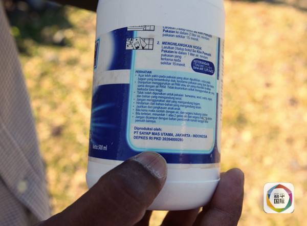 ????7月30日,人們在留尼汪海灘上發現的產自印度尼西亞雅加達的洗衣液。(圖片來源:法新社)