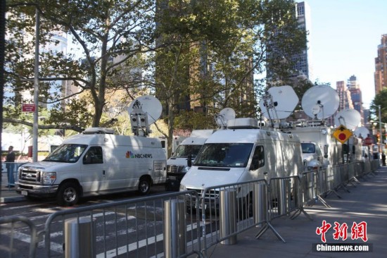 當(dāng)?shù)貢r(shí)間9月24日,電視媒體轉(zhuǎn)播車在紐約聯(lián)合國(guó)總部外云集。聯(lián)合國(guó)發(fā)展峰會(huì)將于25日至27日舉行,150余位世界各國(guó)領(lǐng)導(dǎo)人將出席本次峰會(huì)。 中新社記者 鄧敏 攝