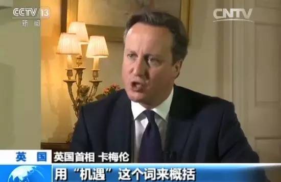 采訪結(jié)束前,央視記者請卡梅倫用一個詞概括中英關(guān)系。創(chuàng)造“黃金時代”一詞,令卡梅倫頗感驕傲:“我想,‘黃金’(時代)這個詞是我開創(chuàng)的。因為我們處在一個重要時刻,外交關(guān)系非常好,經(jīng)貿(mào)和投資關(guān)系也非常好,人文交流非常密切。”