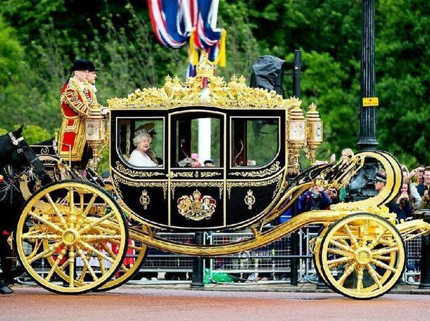 值得一提的是澳大利亞耗巨資為女王打造的這輛豪華馬車,除了飾有大量黃金,其制造材料中包括100多件英國文物,被稱為“移動的歷史博物館”。黃金馬車常用于王室和國家的重要場合,如國事訪問和婚禮等。俄羅斯總統普京、韓國總統樸槿惠等國家領導人訪英時就乘坐過這輛馬車。