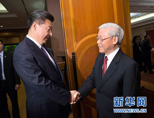 阮富仲向習(xí)近平介紹了越南革新事業(yè)取得的成績和越共十二大籌備情況。阮富仲表示,越方高度重視新形勢下黨建工作,關(guān)注中方黨建和發(fā)展社會(huì)主義經(jīng)驗(yàn),愿同中方加強(qiáng)交流合作,互學(xué)互鑒。越方贊同兩國增進(jìn)各領(lǐng)域交流合作。