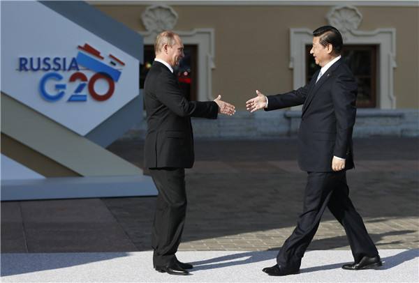2013年9月4日,習(xí)近平抵達(dá)俄羅斯圣彼得堡出席5日至6日舉行的二十國(guó)集團(tuán)領(lǐng)導(dǎo)人第八次峰會(huì)。在此次峰會(huì)上,國(guó)家主席習(xí)近平提出發(fā)展創(chuàng)新、增長(zhǎng)聯(lián)動(dòng)、利益融合等一系列新理念,倡導(dǎo)二十國(guó)集團(tuán)成員建立伙伴關(guān)系,樹(shù)立命運(yùn)共同體意識(shí),在競(jìng)爭(zhēng)中合作,在合作中共贏。