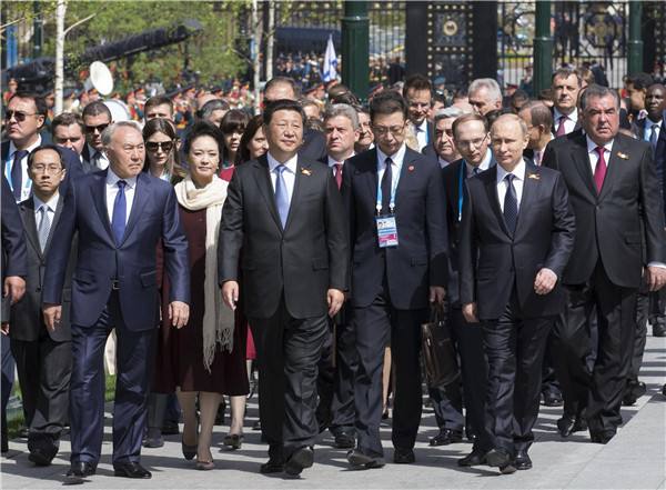 2015年5月8日,習(xí)近平抵達(dá)俄羅斯首都莫斯科,開(kāi)始訪問(wèn)俄羅斯,并出席俄羅斯紀(jì)念衛(wèi)國(guó)戰(zhàn)爭(zhēng)勝利70周年慶典。