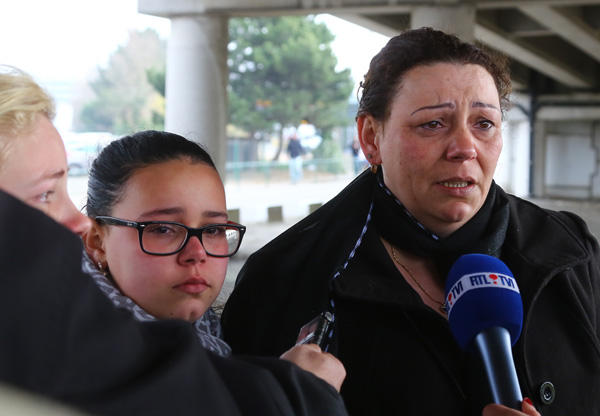 3月22日,在比利時(shí)首都布魯塞爾,兩名現(xiàn)場(chǎng)目擊者在接受采訪時(shí)潸然淚下。新華社記者龔兵攝