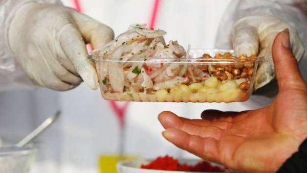 ????“塞維切”是深受秘魯人喜愛的傳統(tǒng)美食,其基本做法是將經(jīng)過加工的鮮魚、蝦、貝類等海產(chǎn)品與切碎的洋蔥、辣椒等用檸檬汁腌制而成,享用時配上煮熟的紅薯和嫩玉米等,被譽(yù)為秘魯“國菜”。