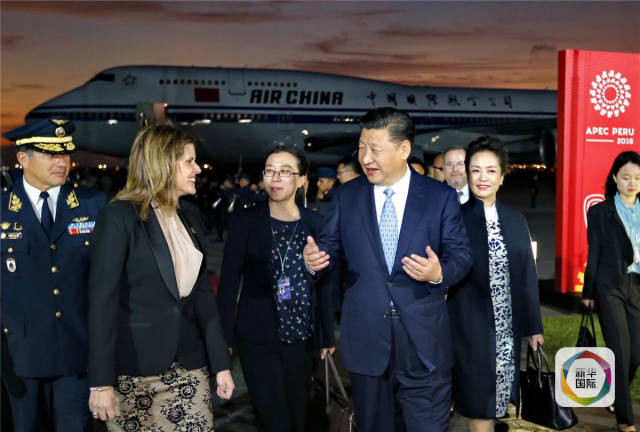 當(dāng)?shù)貢r(shí)間11月18日,國(guó)家主席習(xí)近平抵達(dá)利馬,出席亞太經(jīng)合組織第二十四次領(lǐng)導(dǎo)人非正式會(huì)議并對(duì)秘魯共和國(guó)進(jìn)行國(guó)事訪問(wèn)。習(xí)近平和夫人彭麗媛受到秘魯副總統(tǒng)阿勞斯等熱情迎接。新華社記者鞠鵬攝