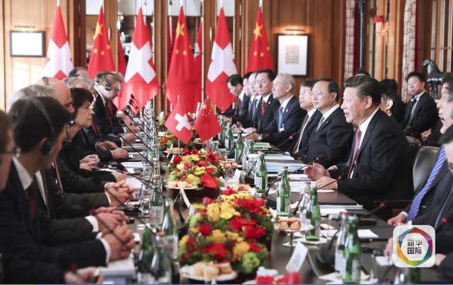 1月16日,國家主席習(xí)近平在伯爾尼同瑞士聯(lián)邦主席洛伊特哈德舉行會(huì)談。(新華社記者 蘭紅光 攝)