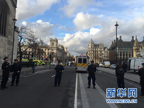 3月22日,警方人員在英國倫敦議會大廈附近執(zhí)勤。新華網(wǎng)記者桂濤 攝