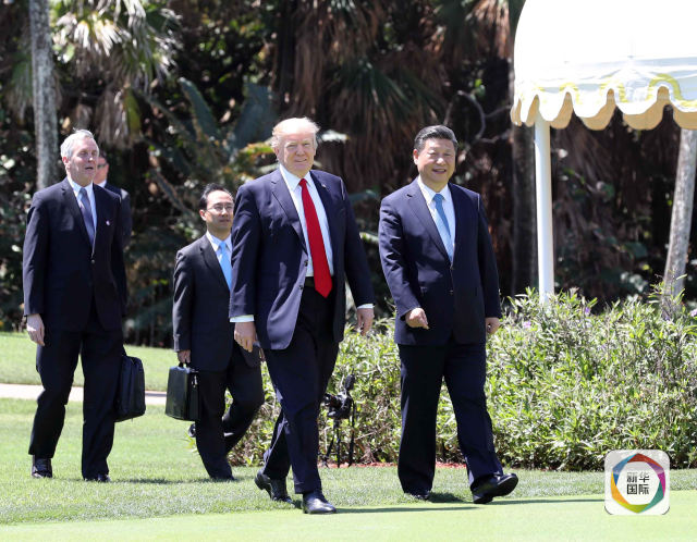 當地時間4月7日,國家主席習近平在美國佛羅里達州海湖莊園同美國總統特朗普舉行中美元首第二場正式會晤。(新華社記者饒愛民攝)