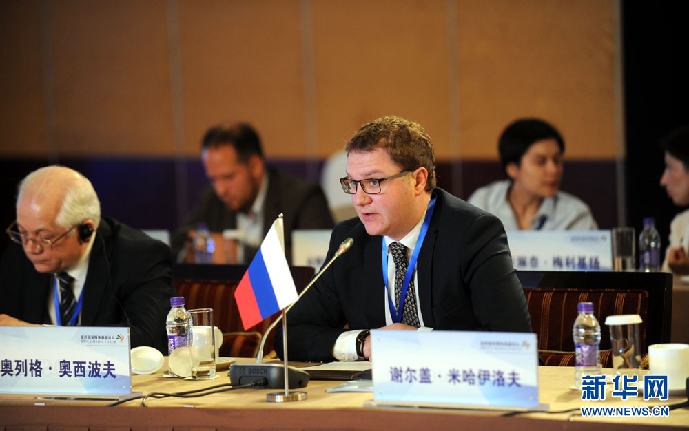 金磚國家媒體高端論壇開幕式6月8日在北京舉行。圖為論壇共同主席、俄羅斯衛星通訊社第一副總編輯奧列格·奧西波夫發表演講。 新華網 孫韜 攝