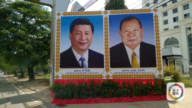 在老撾國(guó)家主席府正門,懸掛著習(xí)近平主席和老撾國(guó)家主席本揚(yáng)的大幅畫像。乘車路過的老撾青年人朝在主席府外采訪的中國(guó)記者熱情打著招呼,歡笑聲灑了一路。